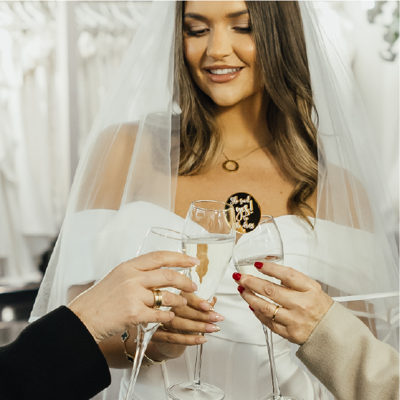 Step into our stylish space and relax, glass of bubbles in hand, on our soft sofas whilst the experts scour the rails for a selection of exquisite dresses for you to try